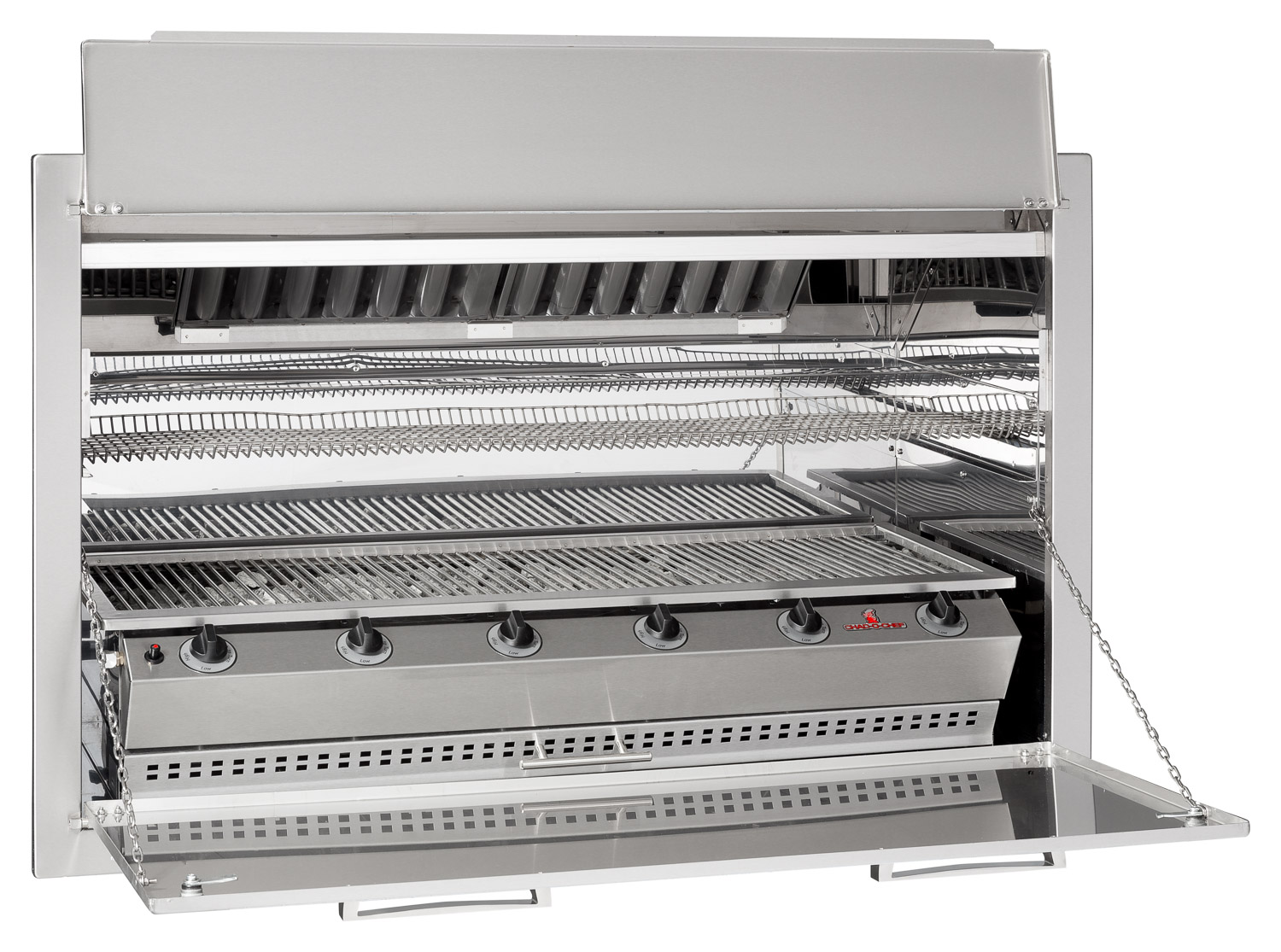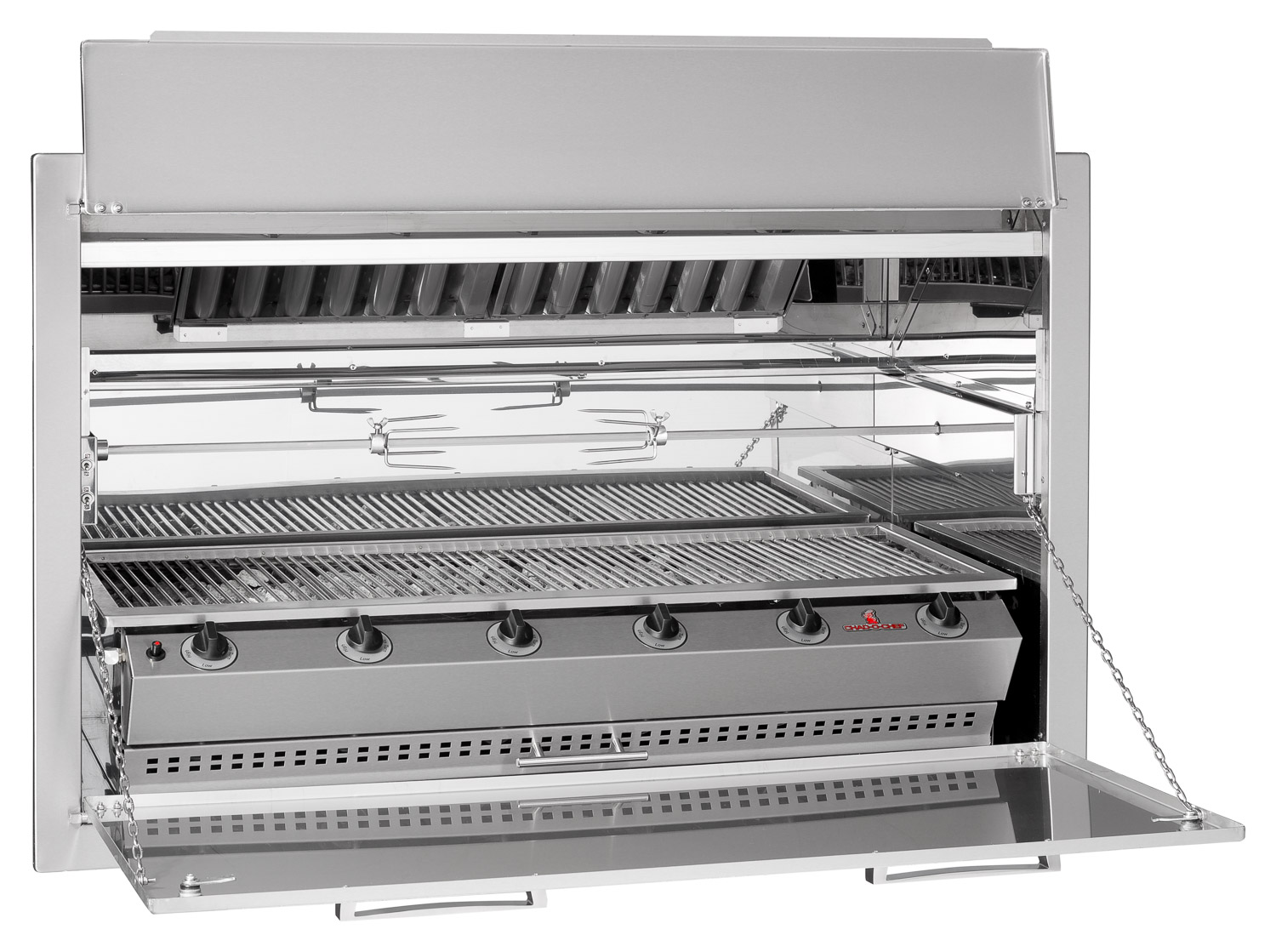 The Chad-O-Chef Forced Draught 6-Burner Entertainer is the ideal braai for your entertainment area. An elegant stainless steel housing provides the perfect setting for your Chad-O-Chef gas grill. Accompanied by our 6 Burner Sizzler, the Entertainer gives you ample room to braai two large steaks per burner(or 4 small chops), and even more cooking options by adding our commercial strength Rotisserie Spit.